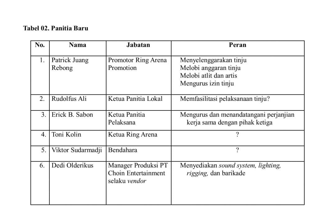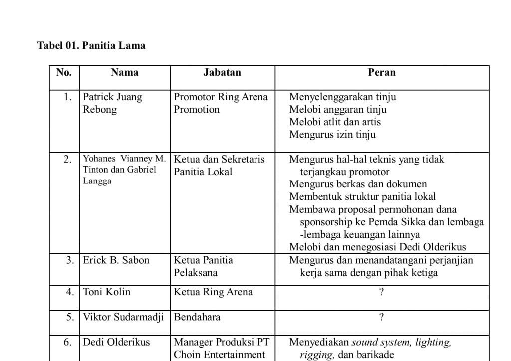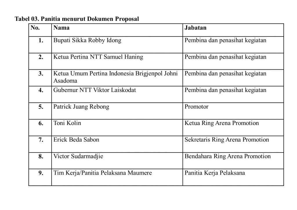 Berikut Redaksi lampirkan hasil investigasi EKORA NTT terkait dengan struktur panitia tinju internasional itu.