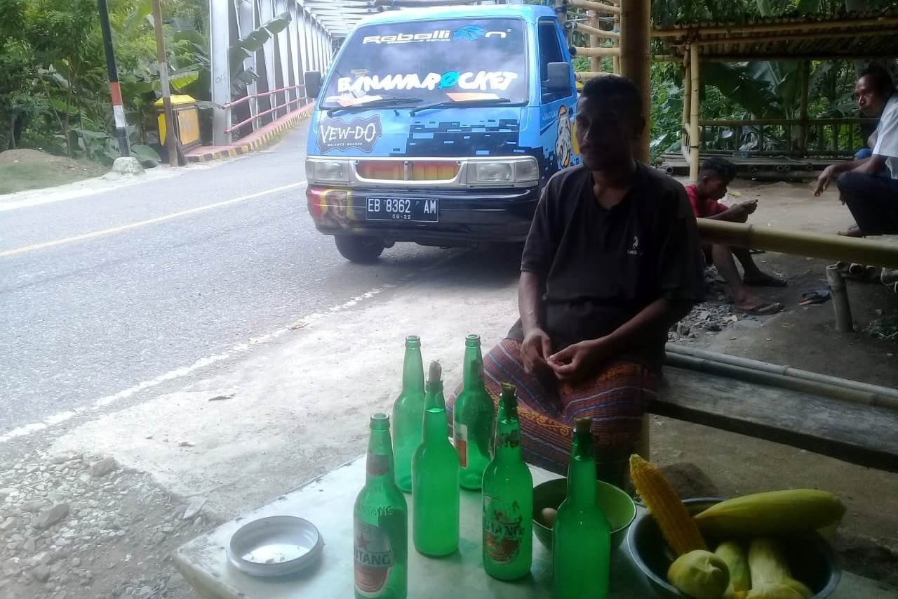 Hanya butuh waktu 15 menit, saya sudah mencapai jembatan Kilometer 14 arah timur Kota Ende. Di sana, berjejer rapi lapak-lapak jualan di pinggir kiri-kanan jalan negara. Saban hari lima pedagang menjajakan jualannya kepada setiap pengendara yang melintas.