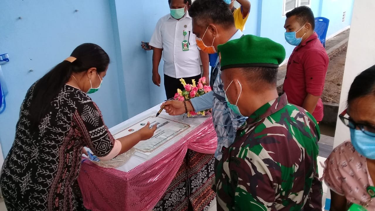 Usai meresmikan ruang perawatan isolasi, Bupati Robi Idong didampingi Direktris RSUD dr. Tc Hillers Maumere, dr. Mercy Parera menyerahkan piagam penghargaan dan kartu sikka sehat kepada para pekerja pembangunan ruang perawatan isolasi Covid-19.