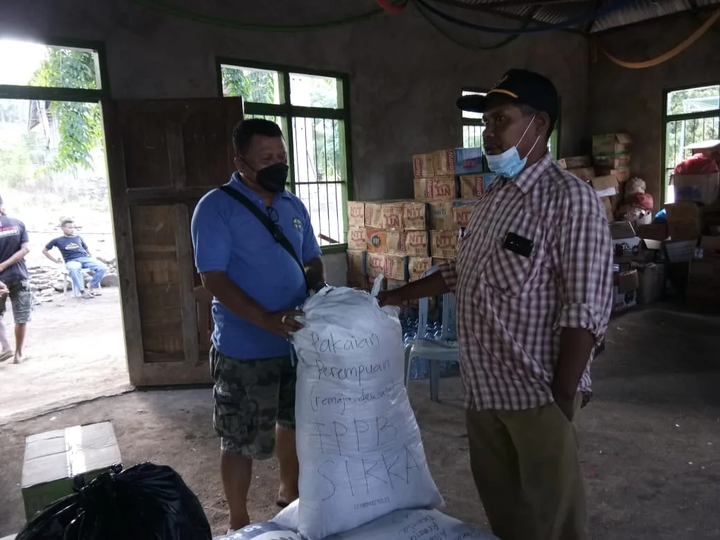 “Bantuan yang disalurkan, yakni 80 kilogram beras, aqua 24 dos, mie instan 5 dos, dan tiga karung pakaian layak pakai,” terang Yuven Wangge.