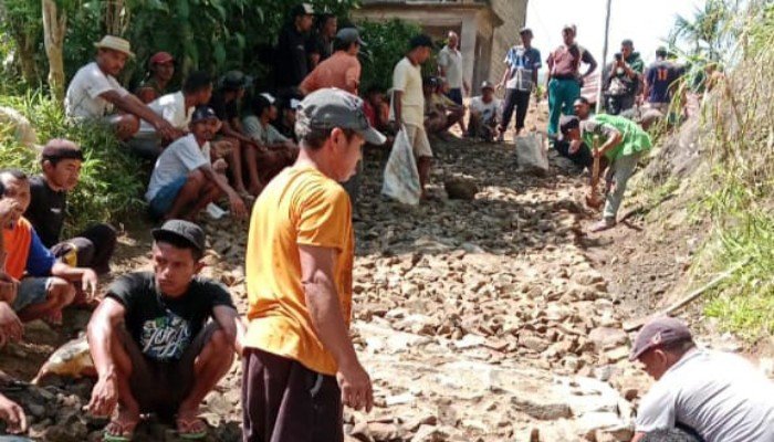 Kata dia, warga secara sukarela mengeluarkan uang pribadi untuk pengadaan material seperti batu, semen dan pasir.