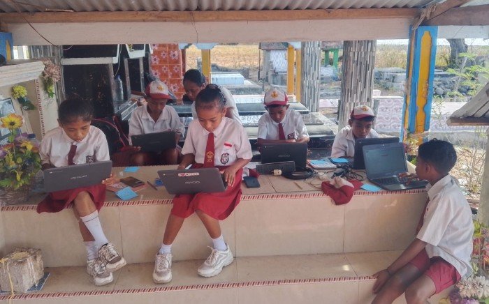 Siswa SDK Lamawohong melaksanakan ujian di pekuburan umum desa setempat, sedangkan siswa SDK Kalelu dan SDK Lamaole mengakses jaringan dari Larantuka di wilayah pesisir pantai.