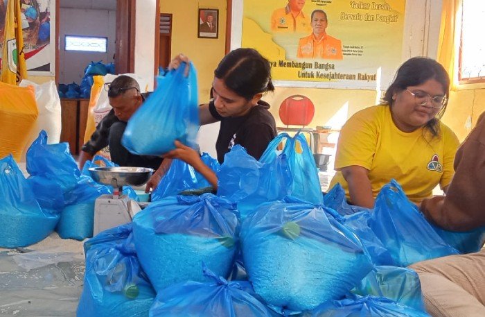 Larantuka, Ekorantt.com – Pengurus Partai Golkar Flores Timur menyiapkan seribu paket sembako dalam pelaksanaan pasar murah sambut HUT ke-61 di Kantor Sekretariat Kantor Golkar di Kelurahan Lokea, Kota Larantuka pada Minggu, 5 Oktober 2025.