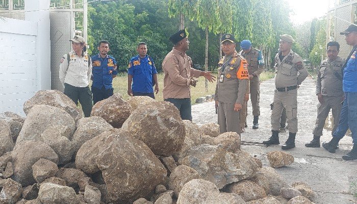 Maumere, Ekorantt.com – Sebuah truk menurunkan muatan batu di pintu gerbang kantor DPRD Sikka, Kamis, 30 Oktober 2025.