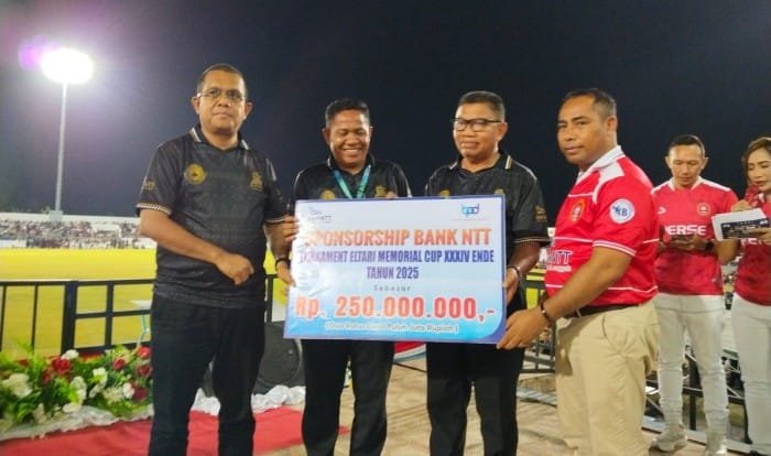 Ende, Ekorantt.com – Bank NTT menyalurkan bantuan uang tunai sebesar Rp250 juta kepada panitia penyelenggara El Tari Memorial Cup (ETMC) ke-34 di Ende pada Minggu, 9 November 2025.