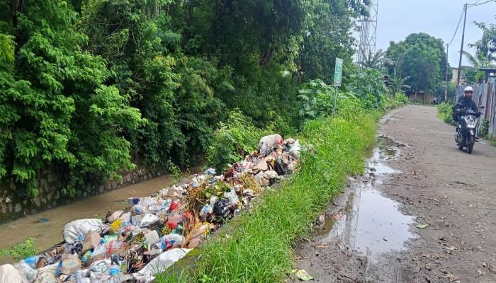 Pantauan Selasa, 13 Januari 2026 di lokasi, tumpukan sampah rumah tangga, plastik hingga non-organik menggunung di beberapa titik, tepat di bawah plang yang baru dipasang.