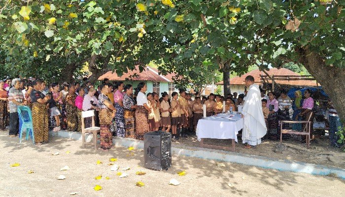 Misa yang dipimpin Pastor Paroki Salib Suci Mauloo, Pater Inosentius O Carm berlangsung khidmat di Enamasa Paga Beach, Sabtu, 31 Januari 2026. Misa diikuti oleh ratusan umat Stasi Paga, para nelayan setempat, serta keluarga.