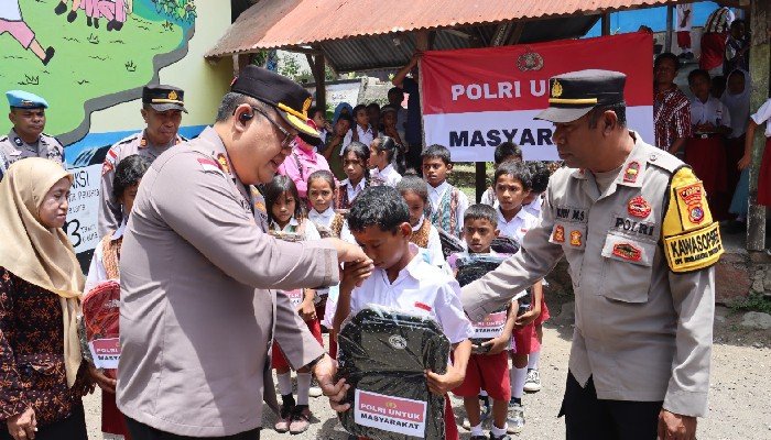 “Aksi ini didasari oleh laporan mengenai kondisi beberapa siswa yang tetap semangat bersekolah meski hidup dalam keterbatasan, dari itu kami bersama anggota dan Bhayangkari turun memberikan tas, alat tulis dan kelengkapan sekolah lainnya,” ujarnya.