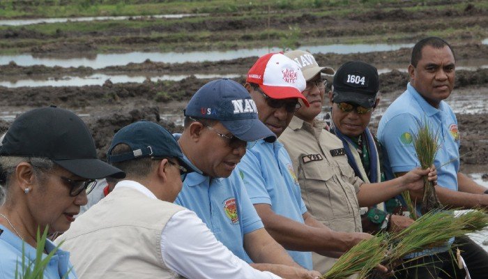 “Peningkatan produksi beras tahun 2025 turut berdampak positif bagi peningkatan penyerapan beras oleh Perum Bulog di NTT sebanyak 6.056 ton,” jelas Gubernur NTT, Emanuel Melkiades Laka Lena saat melaksanakan Gerakan Tanam Padi Serentak se-Provinsi Nusa Tenggara Timur di Desa Manusak, Kecamatan Kupang Timur, Kabupaten Kupang pada Senin, 16 Februari 2026.