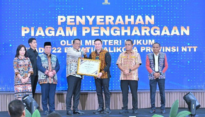 Penghargaan diberikan kepada 22 kepala daerah kabupaten/kota se-Provinsi NTT, termasuk Kota Kupang, sebagai bentuk apresiasi atas komitmen pemerintah daerah dalam menghadirkan layanan hukum yang lebih dekat, inklusif, dan mudah diakses masyarakat.
