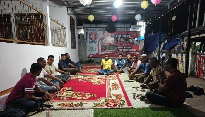 Di bawah posko itu, duduk lesehan tujuh pemuda yang asyik bercerita. Bersama Lurah Ekasapta, Dave Valentino Mautuka, mereka baru selesai menata posko yang bisa menampung  lebih dari 15 orang.